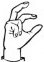 На ћирилици написано СОЊА КАЗИМИРОВИЋ састоји се из 15 слова [?]. Исписано ћириличном једноручном азбуком за глувонеме: